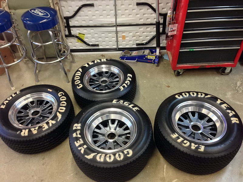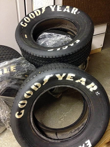 Before I received my kit and started the build, the first purchase I actually made were tires!   I knew I wanted 15" Goodyear Billboards because I just love the period-correct look.   And a deal happen to fall in my lap: A friend in our local club is an SCCA racer and was building a track car.  He bought a new seat of Goodyears for his build, but then decided he wanted bigger brakes and opted for 17" wheels and tires.  So he sold me this brand new unused set for a price I couldn't pass up.   They sat in my cool, dark garage in their plastic wrapping until it was time to use them. Which was next: