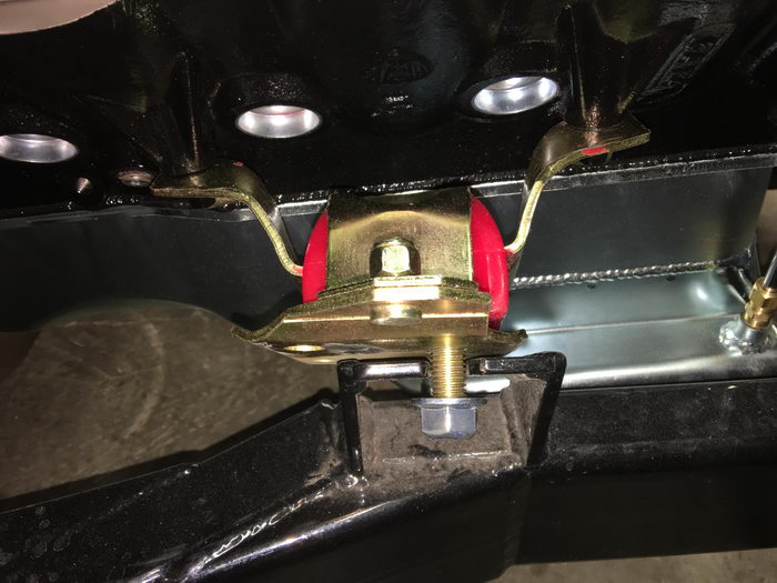 Now to the frame mounts: Notice the nut almost doesn't purchase any material to clamp to. With the engine mount bolted properly to the block, they would sit lower, but maybe not enough.